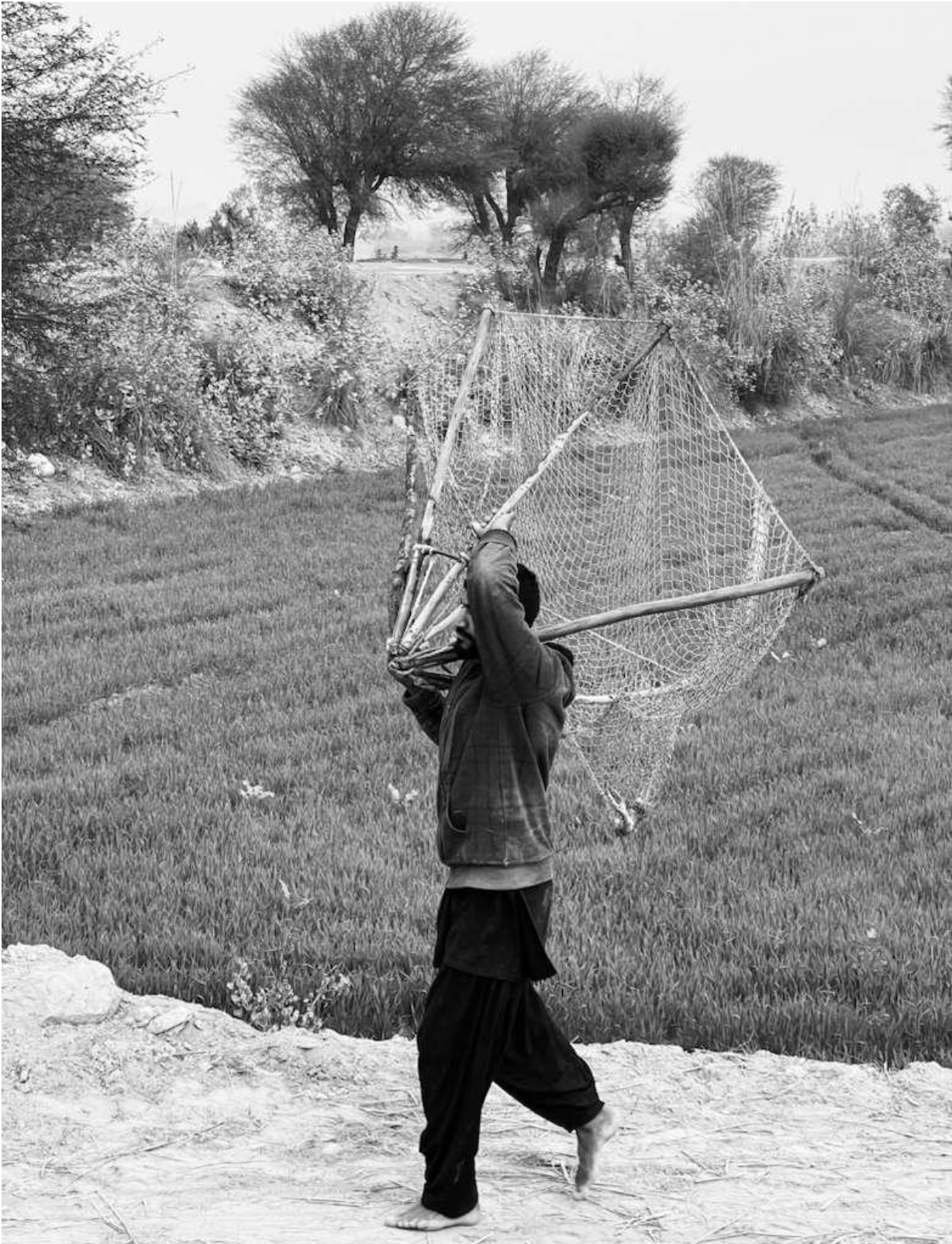And so we will begin elsewhere - from the very weaving of life. Like weaving the tokra (basket/shelter), we weave life with/from Sindhu. We weave life from what the seasons leave behind and what the waters offer us. From kaanh (reeds), straws, branches, and with hands and the time that flows with waters. We weave nets through which to catch fish, releasing the young back into the waters so that life may be sustained. We keep only what we need, except for what we are forced to extract through the violence of the Thaykaydar (fishing contractors). Our relation to Sindhu is not ownership and not lack. It is kinship, care, and return. It is a practice. Weaving T okra is an earth practice. It is a practice of knitting life, letting birds sleep, preserving food, enduring rain, sustaining dignity but all without accumulation.